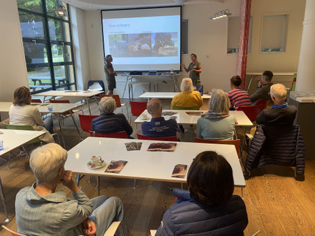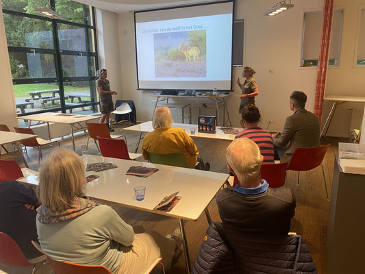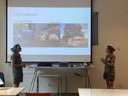 Dit jaar waren we bijzonder verheugd met de bijdrage van Rozenn Le Buhan en Mirjam de Hiep van het Goois Natuur Reservaat (GNR). Deze twee dames, ze zijn bovendien ook nog schaapsherder van een kudde die ze steevast collega's noemen, namen ons mee in het nieuwe begrazingsbeleid van GNR naar een natuurlijke sociale kudde. Op de heide rond Hilversum grazen Hooglanders, maar manifesteert zich ook meer en meer de wolf. Sociale kuddes zijn beter tegen deze dreiging bestand.