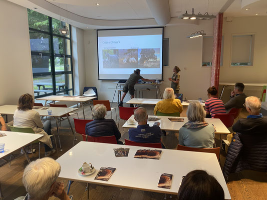Onder grote belangstelling van vele 'Vrienden van de Rusthoekweide' was er op 3 juni weer een jaarlijkse informatieavond. Als bestuur leggen we dan verantwoording af over ons beleid, de financiën en ambities voor lopende en komende jaar. Dit jaar voor het laatst in Het Koetshuis van AT Osborne. We begonnen de avond met de verjaardag van dierenverzorger Mario, door luidkeels het 'lang zal hij leven' te zingen.